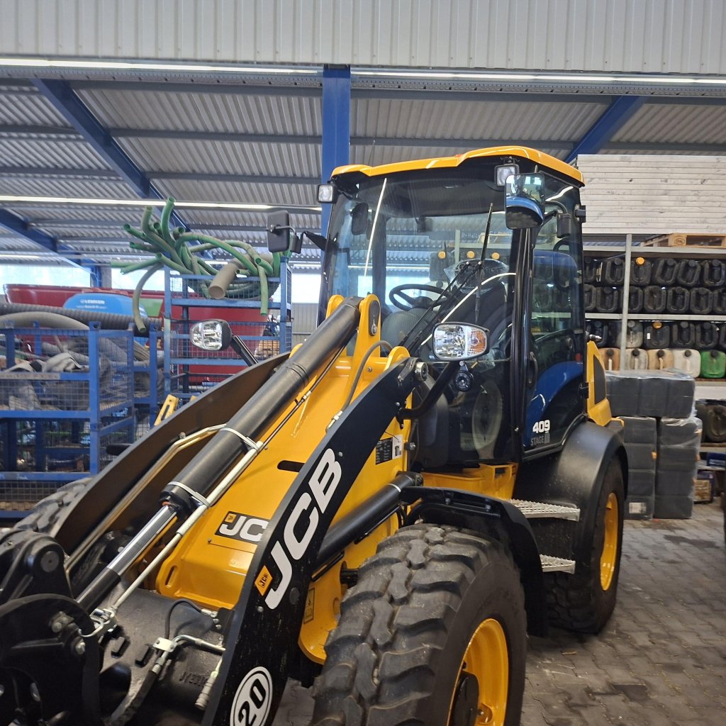 - Kolový nakladač 409 T5 - 4 válcový dieselový motor JCB KOHLER KDI 2504 TCR, výkon 54,5 kW (74 koní), motor je vybaven filtrem pevných částic a splňuje emisní normu T5, dvoustupňový hydrostatický pohon, 20 nebo 40 km/h), kabina ROPS / FOPS, nastavitelný sloupek řízení, loketní opěrka vpravo, spínač pro volbu směru jízdy na joysticku, vypínač baterie, cyklónový filtr, proporcionální servohydr. ovládání, elektroventil pro přepínání hydrauliky rychlozávěsu, paralelní zdvih se dvěma zdvihovými válci a jedním výklopným válcem, silniční světlomety dle StVZO