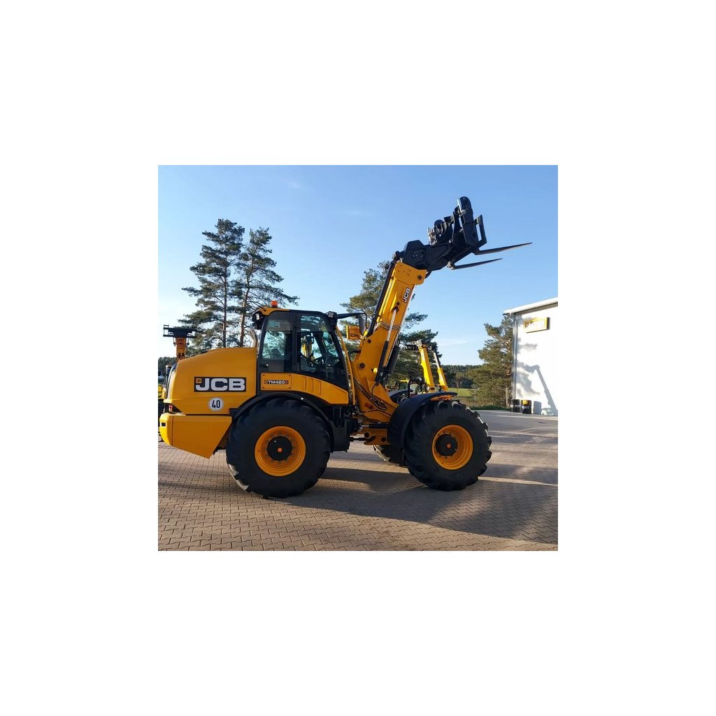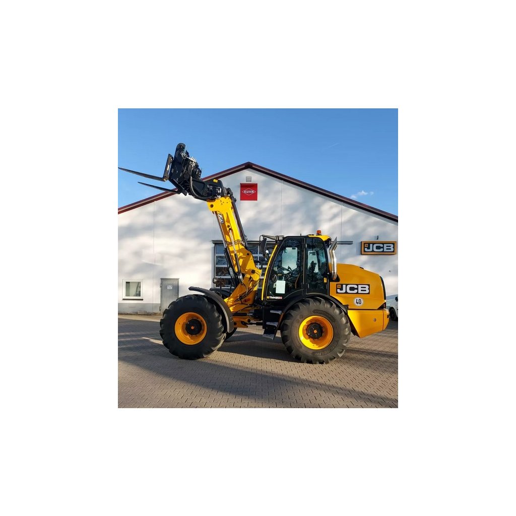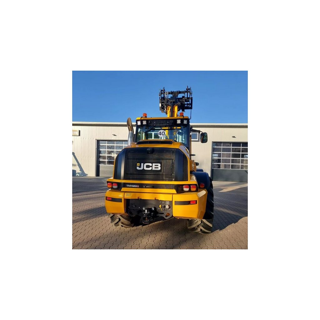 - Kolový nakladač s teleskop. ramenem TM420S - 4 válcový dieselový motor JCB Dieselmax s DOC, DPF a SCR, obsah 4.8 l, redukované emise EU stupeň V, výkon 129 kW/173 koní, maximální točivý moment 690 Nm, Powercore, Cyklonový vzduchový filtr s aktivním odlučovačem velkých částic, chladič s většími otvory, 8-mi stupňová převodovka Powershift (8 vpřed/4 vzad) s automatickým řazením 5. - 8. stupně a uzamčením měniče na všech stupních, 40 km/h se sníženými otáčkami motoru, kabina splňující normy bezpečnosti a pevnosti ROPS/FOPS Kabina CommandPlus se 4 LED pracovními světly, 2 vpředu a 2 vzadu; deluxe nastavitelná šířka vnějších zrcátek; 12V elektrický systém s odpojovačem baterie; modul LiveLink; servohydraulické jednopákové ovládání hydrauliky (proporcionální ovládání ramene a vněj. HO), variabilní objemové čerpadlo se snímáním zatížení, max. výkon 160 l / min, max. tlak 260 bar; spínač pro odtlakování vnějšího HO; bronzovo-grafitová pouzdra s prodlouženými intervaly mazání podvozku, tažný závěs