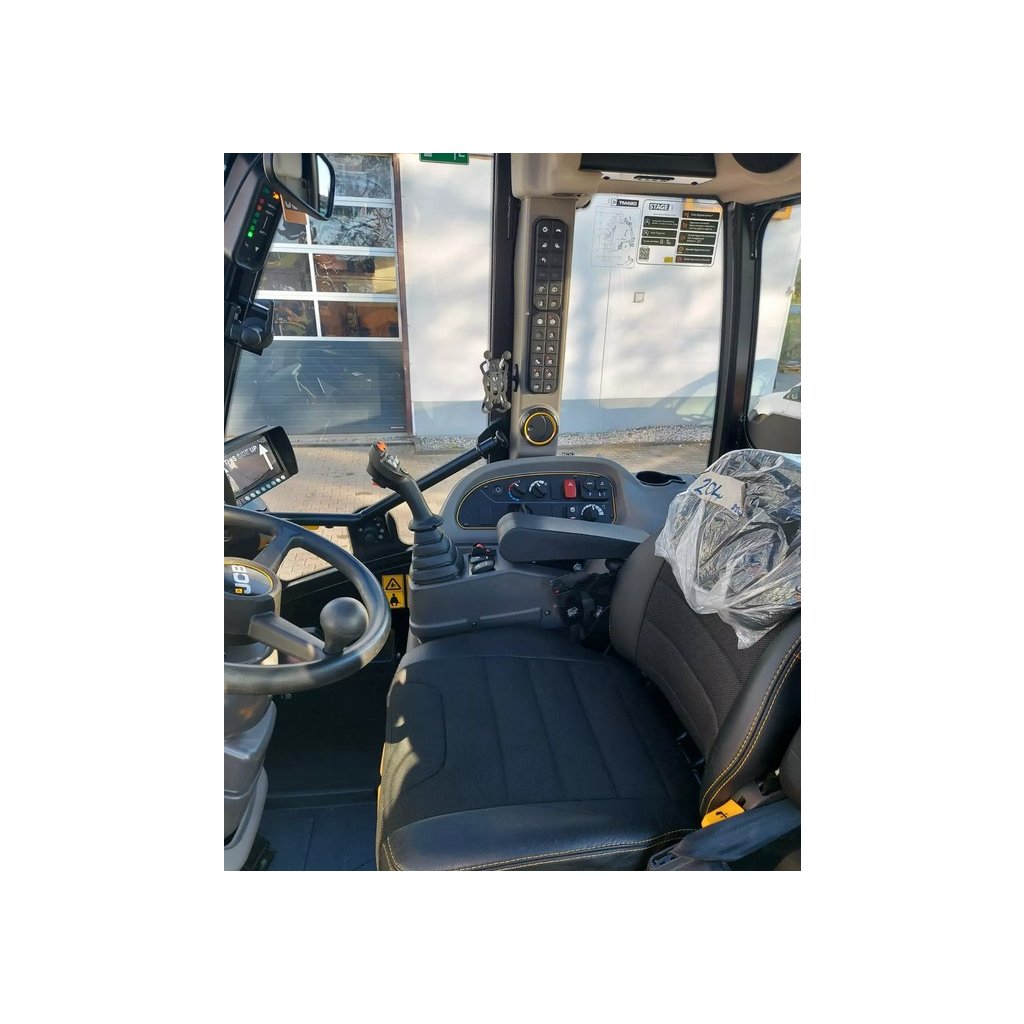 - Komfortní kabina ROPS / FOPS s klimatizací a kamerou pro zpětný chod (včetně displeje), obsahuje: Grammer mechanicky odpružené sedadlo řidiče s nastavitelnou loketní opěrkou vlevo, vysoké opěradlo a látkový potah sedadla; výškově a úhlově nastavitelný sloupek řízení; připojení 12 V; příprava na rádio; přední sluneční clona; LED osvětlení kabiny; přepínač směru jízdy na joysticku a sloupku řízení