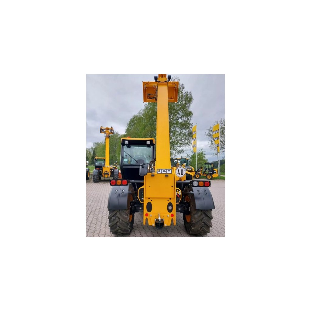 - Teleskopický manipulátor JCB 532-70 Agri - motor JCB DieselMax třídy V (81 kW), 4,8 l, 516 Nm, automatický reverz ventilátoru chladiče, 4 stupňová převodovka se zámkem měniče toč. momentu na 4. st., 40 km/h, odpojitelný pohon zadní nápravy, PowerBreaks, parkovací brzda SAHR, manuální závěs 10 t Clevis se zrcátkem a dvouokruhové hydr. brzdy přívěsu a elektrikou, 3 režimy řízení (řízení 2 kol, řízení 4 kol, krabí chod) s přepínáním automaticky po změně režimu při srovnání kol, Smart Hydraulic Paket: čerpadlo 140 l/min s inteligentním hydraulickým systémem pro spuštění a zasunutí výložníku, vytřásací mód lžíce, tlačítko uvnitř a vně kabiny pro uvolnění tlaku pro přídavný okruh, tlumení podélného dorazu, ukazatel přetížení s odpojením zdvihu dle EN 15000, LiveLink systém, siln. světl., zrcátka a výstraž. zař. v souladu s StVZO, pracovní světlomety - 2x vpředu, 2x vzadu, 2x na výložníku, 1x nad tažným zařízením, traktorová homologace T1A, EN1459-1